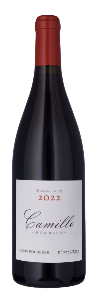 De to vine i serien Camille kommer fra hver sin enkeltmark og er begge fremragende ambassadører for hvert sit enestående terroir! Pinot Noir-druerne (100%) til den røde Camille kommer fra lieu-dit vinmarken ”Charmont” (0,43 ha.) i Mareuil-sur-Aÿ, hvor vinstokkene blev plantet i 2002. Camille-vinene blev produceret første gang i 2018, og årgang 2022 er således den 5. årgang og en årgang, som vejrmæssigt bød på solskins- og varmerekorder. Juli måned blev den mest solrige siden 1959 og mellem forår og sommer blev der sat ikke færre end 5 varmerekorder. Heldigvis bød juni og august på passende mængder regn på de helt rigtige tidspunkter, hvilket afværgede en lurende tørke, og druerne blev høstet ved helt optimal modenhed den 6. september.