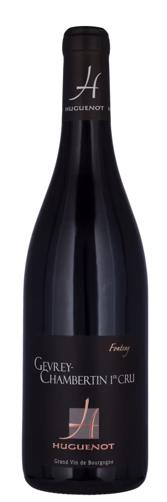 1er Cru marken ‘Fontenys’ ligger umiddelbart syd for selve landsbyen Gevrey-Chambertin, som nabo til Grand Cru marken ‘Ruchottes-Chambertin’. Vinene fra ‘Fontenys’ er kendte for deres styrke og harmoni. Både under dyrkning og vinificering tager man hensyn til månens cyklus, ifølge biodynamiske principper. Der produceres kun ca. 1.500 fl. Gevrey-Chambertin 1. Cru ‘Les Fontenys’ på Domaine Huguenot.I sin ungdom er vinen stadig en smule præget af træfad i duften, men det harmonerer fint med de ellers krydrede, frugtrige og en smule eksotiske toner, som kommer frem. I smagen er vinen flot struktureret med en god velour og en meget kompleks karakter. Den slutter harmonisk, men man fornemmer en del tannin, og vinen vil derfor kunne modnes i mange år endnu – og blive større af det. Men allerede nu er det en stor vin! Servere den til råvildt, okse og lam.