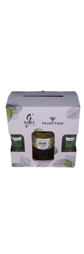 Gaveæske med June Pear 70cl., 4 stk. Fever Tree Ginger Beer 20 cl.